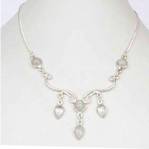 92.5 Sterling Silver Necklace Studded with Semi Precious Gemstones.