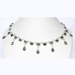 92.5 Sterling Silver Necklace Studded with Semi Precious Gemstones.