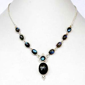 92.5 Sterling Silver Necklace Studded with Semi Precious Gemstones.