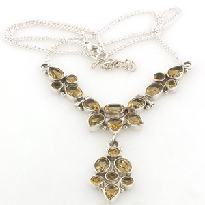 92.5 Sterling Silver Necklace Studded with Semi Precious Gemstones.