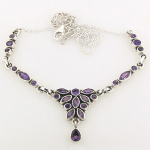 92.5 Sterling Silver Necklaec Studded with Semi Precious Gemstones.
