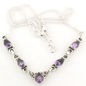 92.5 Sterling Silver Necklace Studded with Semi Precious Gemstones.