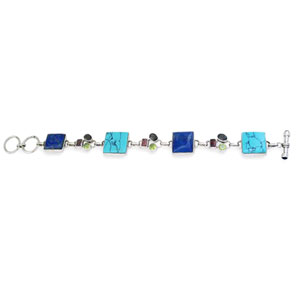 92.5 Sterling Silver Bracelet Studded with Semi Precious Gemstones.