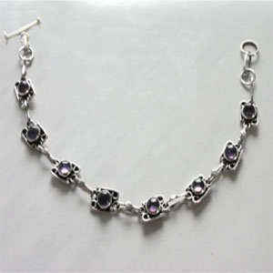 92.5 Silver Gemstone Bracelet Studded With Semi Precious Gemstones.