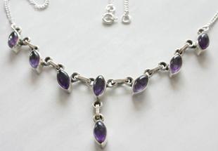 Sterling Silver Necklace Studded with Semi Precious Cabochon Gemstones.