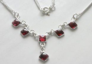 Sterling Silver Necklace Studded with Semi Precious Cabochon Gemstones.