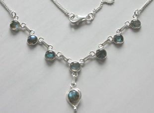Sterling Silver Necklace Studded with Semi Precious Cabochon Gemstones.