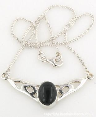 Sterling Silver Necklace Studded with Semi Precious Cabochon Gemstones.