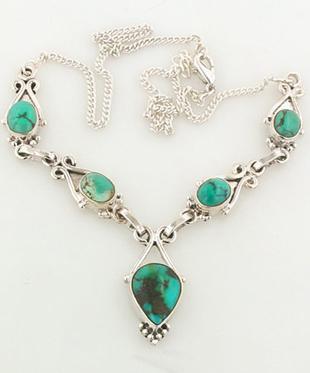 Sterling Silver Necklace Studded with Semi Precious Cabochon Gemstones.