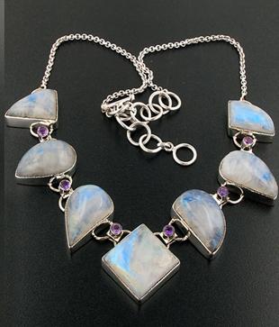 Sterling Silver Necklace Studded with Semi Precious Cabochon Gemstones.