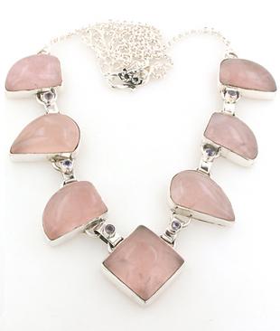 Sterling Silver Necklace Studded with Semi Precious Cabochon Gemstones.