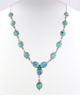 Sterling Silver Necklace Studded with Semi Precious Cabochon Gemstones.