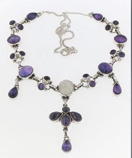 Sterling Silver Necklace Studded with Semi Precious Cabochon Gemstones.