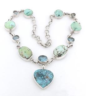 Sterling Silver Necklace Studded with Semi Precious Cabochon Gemstones.