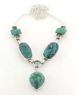 Sterling Silver Necklace Studded with Semi Precious Cabochon Gemstones.