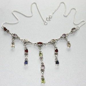 Sterling Silver Necklace Studded with Semi Precious Faceted Gemstones.