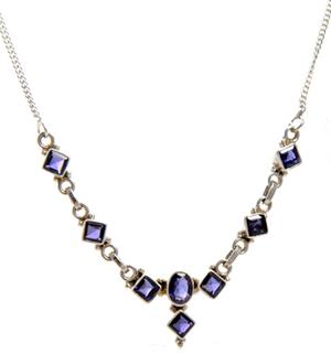 Sterling Silver Necklace Studded with Semi Precious Faceted Gemstones.