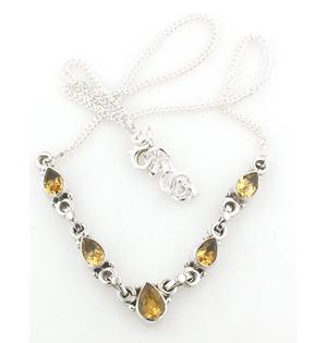 Sterling Silver Necklace Studded with Semi Precious Faceted Gemstones.