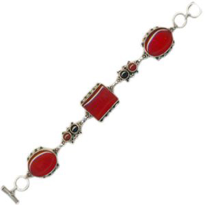 Fine Quality Sterling Silver Bracelet Studded with Red & Black Onyx Stones.