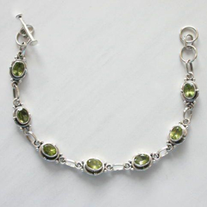 Fine Quality Sterling Silver Bracelet Studded with Faceted Peridot Stones.