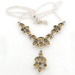 Fine Quality Sterling Silver Necklace Studded with Citrine Faceted Stones.