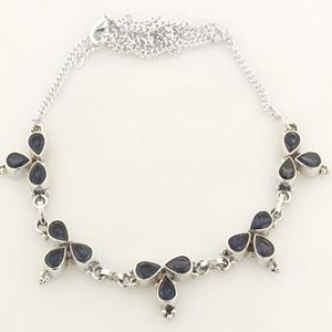 Fine Quality Sterling Silver Necklace Studded with Faceted Stones.