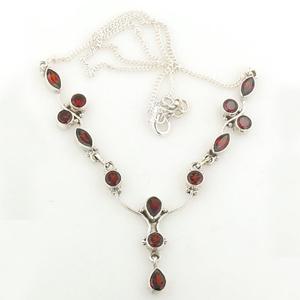 Fine Quality Sterling Silver Necklace Studded with Garnet Faceted Stones.