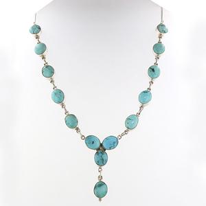 Fine Quality Sterling Silver Necklace Studded with Turquoise Cabochon Stones.