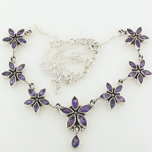 Fine Quality Sterling Silver Necklace Studded with Faceted Amethyst Stones.