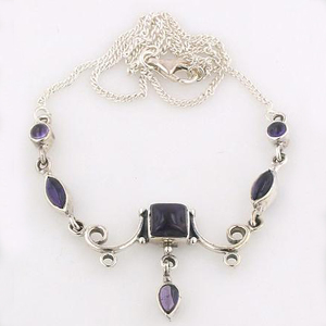 Fine Quality Sterling Silver Necklace Studded with Amethyst Cabochon Stones.