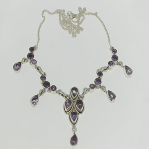 Fine Quality Sterling Silver Necklace Studded with Amethyst Faceted Stones.