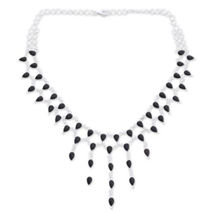 Fine Quality Sterling Silver Necklace Studded with Cabochon Black Stones.