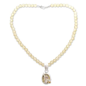 Fine Quality Sterling Silver Necklace Studded with Citrine Faceted Stones and Beads.