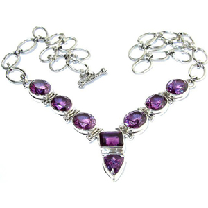 Fine Quality Sterling Silver Necklace Studded with Faceted Amethyst Stones.