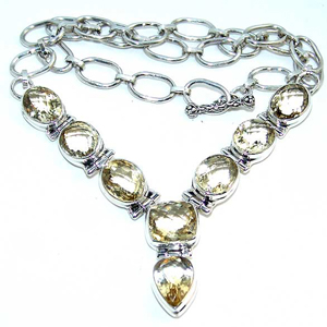 Fine Quality Sterling Silver Necklace Studded with Citrine Faceted Stones.