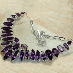 Fine Quality Sterling Silver Necklace Studded with Amethyst Faceted Stones.