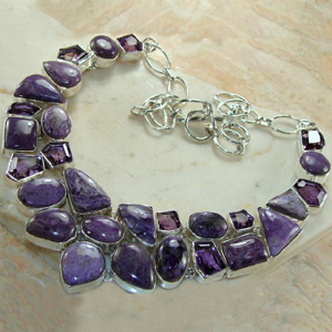 Fine Quality Sterling Silver Necklace Studded with Charorite and Amethyst Stones.