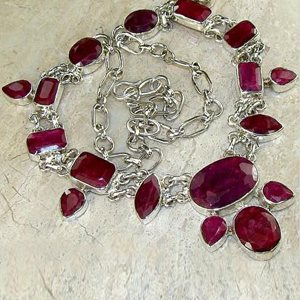 Fine Quality Sterling Silver Necklace Studded with Dyed Ruby Stones.