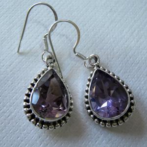 Fine Quality Sterling Silver Earring Pair Studded with Amethyst Faceted Pear Stones.