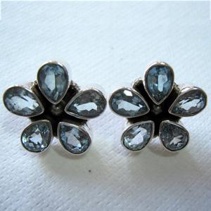 Fine Quality Sterling Silver Earring Pair Studded with Blue Topaz Faceted Stones.