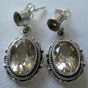 Fine Quality Sterling Silver Earring Pair Studded with Citrine Faceted Stones.