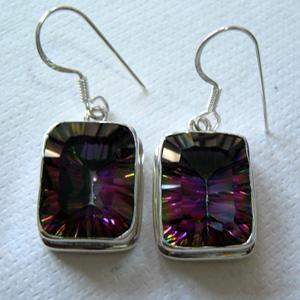 Fine Quality Sterling Silver Earring Pair Studded with Mystic Quartz Stones.