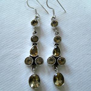 Fine Quality Sterling Silver Earring Pair Studded with Citrine Faceted Stones.