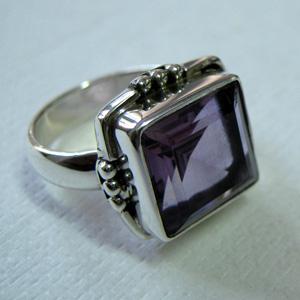 Fine Quality Sterling Silver Ring Studded with Amethyst Faceted Stone.