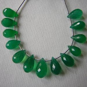 Green Onyx Faceted Drops. Size:8x12-10x16mm, Length: 8"