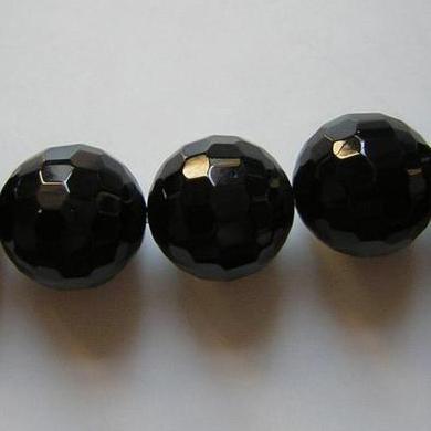 Black Onyx Faceted Round Beads. Size:14mm, Length: 14"